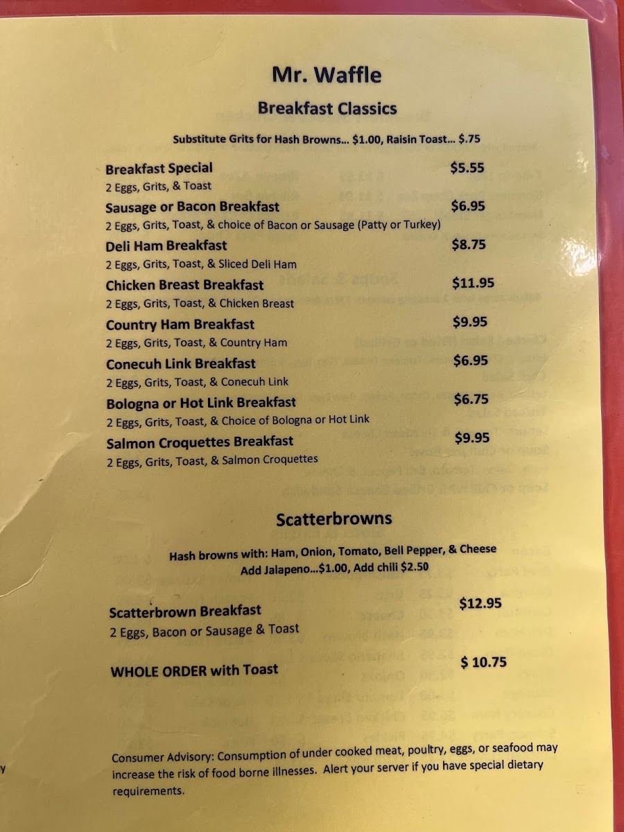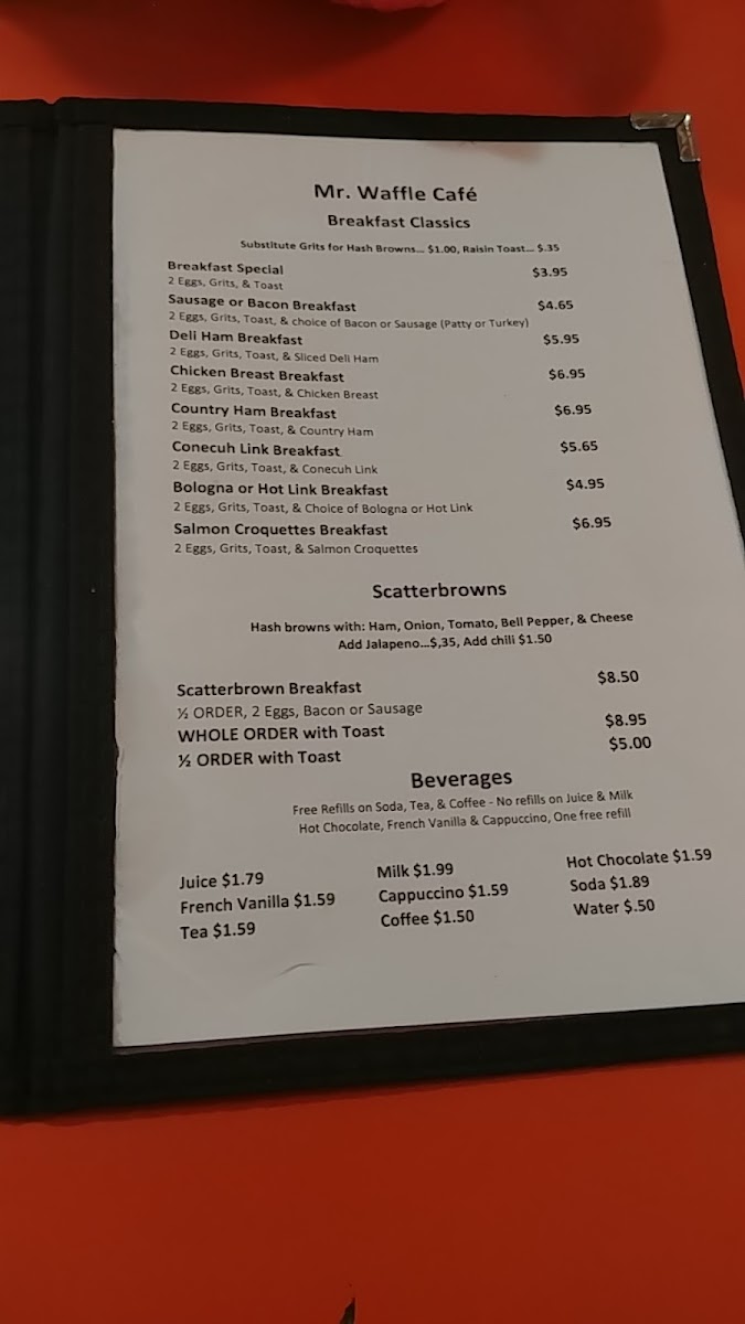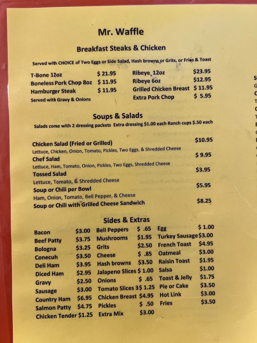 Welcome to Mr Waffle, a delightful breakfast spot located at 1518 W Highland Ave in Selma, AL. This charming restaurant is celebrated for its extensive all-day breakfast menu that caters to every taste. From hearty breakfast steaks like the Ribeye and Boneless Pork Chop to classic dishes such as the Breakfast Special and Deli Ham Breakfast, there’s something for everyone.